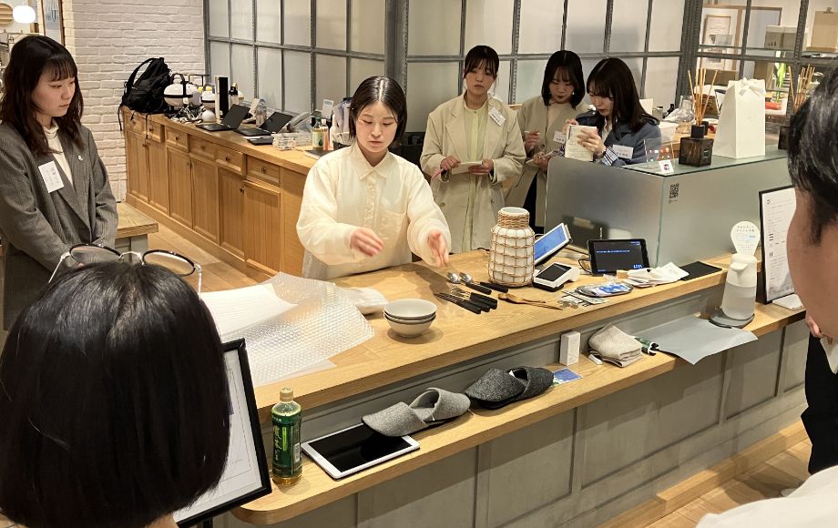 先輩社員が後輩に対して行う接客ロールプレイングなどを中心としたOJT研修です。業務に必要な知識や応対スキルなどを伝承します。店舗の立地や規模により異なるお客様の特性に合わせた接客を日々働く環境の中で、実践しながら学ぶことが出来ます。