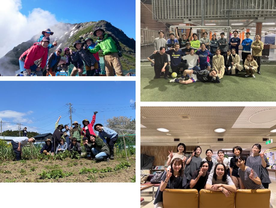 登山、バレーボール、農作物を育てるなど様々に、休日を利用してコミュニケーションが深まるクラブ活動。その活動費の一部を会社が負担し、部署を超えた仲間とのコミュニケーションを支援しています。